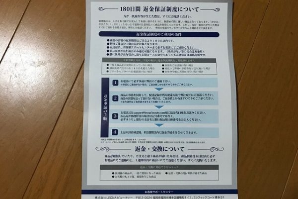 まずこちらは、180日間の返金保証に関する詳しい内容が記載されたパンフレットです。