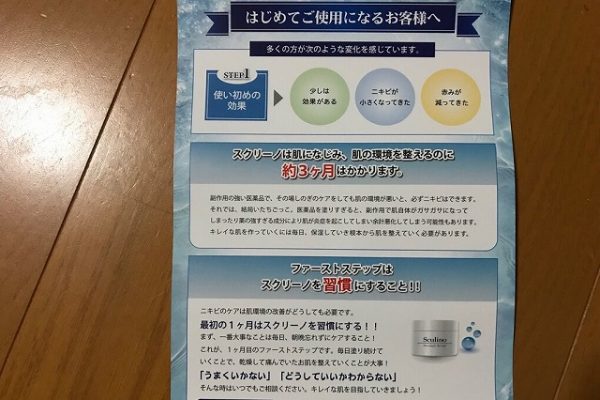 スクリーノを使ってもすぐに効果を実感できない…なんてことがあれば、こうした不安を解消してくれアドバイスも記載されています。