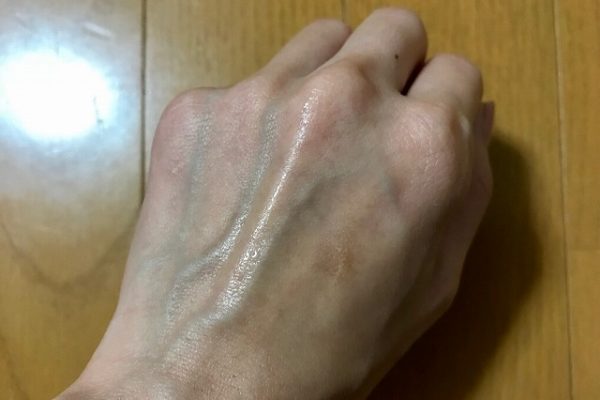 手の甲にパピュレを伸ばしてみると、するすると伸びますし、ベタつきもなかったです。