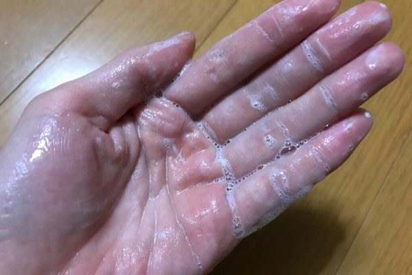 ですが、水であら流すと肌がキュッキュと音を立てるようにきれいになっているので、ほどよい洗浄力を実感。
